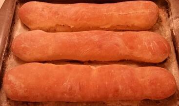 13) Slice and serve with butter(optional; I prefer it on its own) or make something with it! One popular thing to do with it: make a torpedo (that’s a type of sammich made with Salami, Ham, Lettuce, Mayo, Mustard and American Cheese).